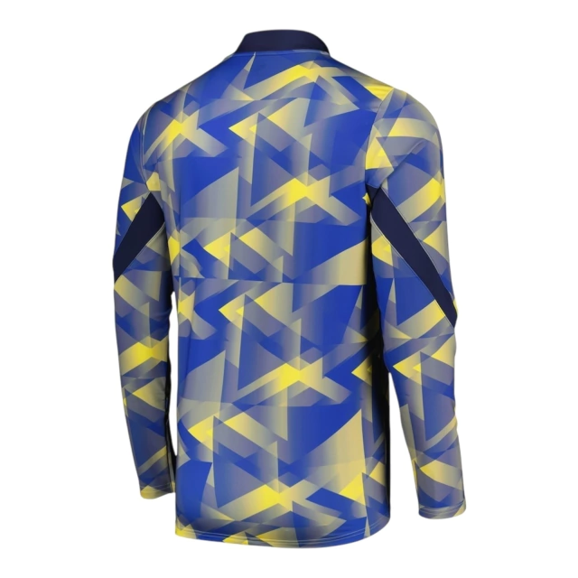 Camisa Everton Pré-jogo 24/25 manga longa – Torcedor Castore Masculina – Azul com detalhes em amarelo