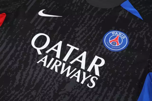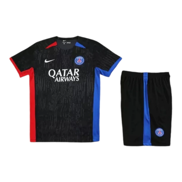 Kit Treino adulto – Camisa e Shorts – Paris Saint-Germain Nike 24/25 – Preto com detalhes em azul e vermelho
